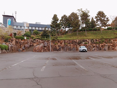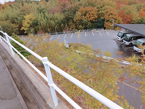 下側の駐車場の奥に、緩やかで広い道があるよ。