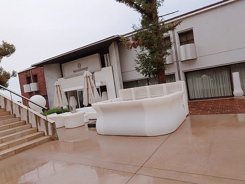 ホテルの方が高台になっているので、すご~い急な狭い道を