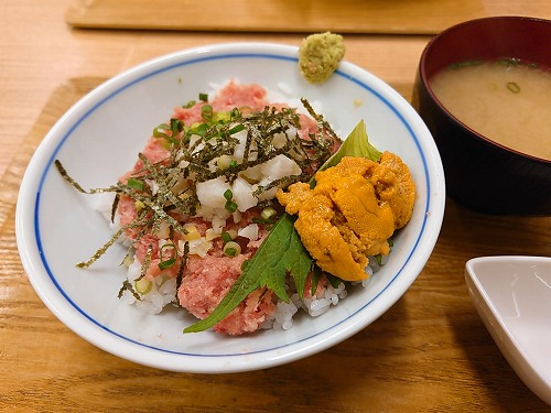 私は、山芋の入った なかおち丼 に半額になっていた雲丹をトッピング!