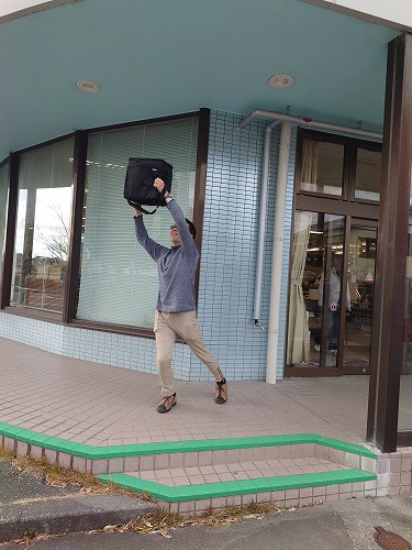 嬉しくてクーラーボックスを持って踊るオット(笑)