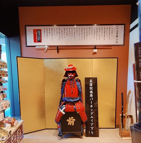 敷地内には長篠設楽原の戦いの物見櫓やのぼり旗、馬防柵も再現されてて、オットが大喜び(^^)