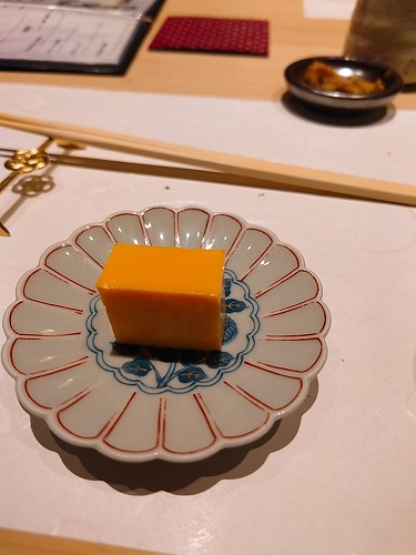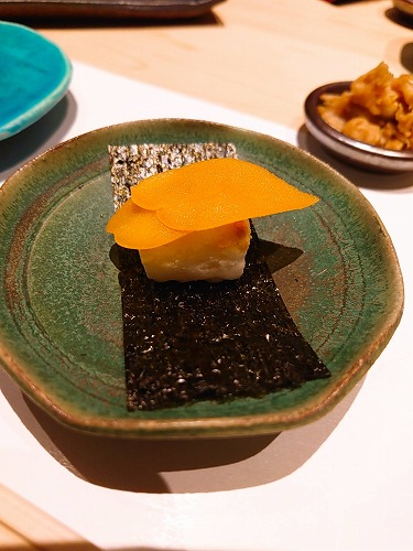 カラスミと下はお餅です!
