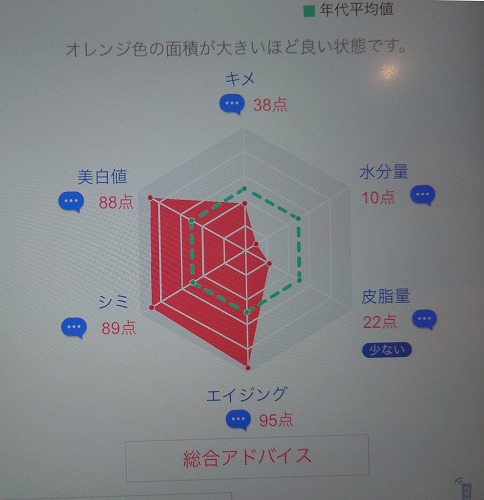 すごい偏ってるけど、美白とシミとエイジングはかなり高得点!