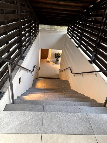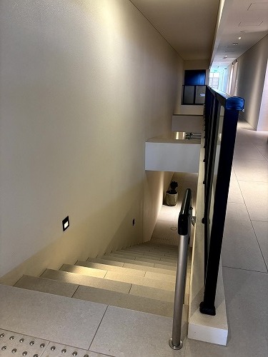 この階段を降りた先がお部屋です。