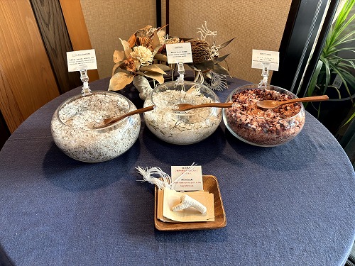 バスソルトバーがあって、好きなバスソルトをお部屋で試せます!